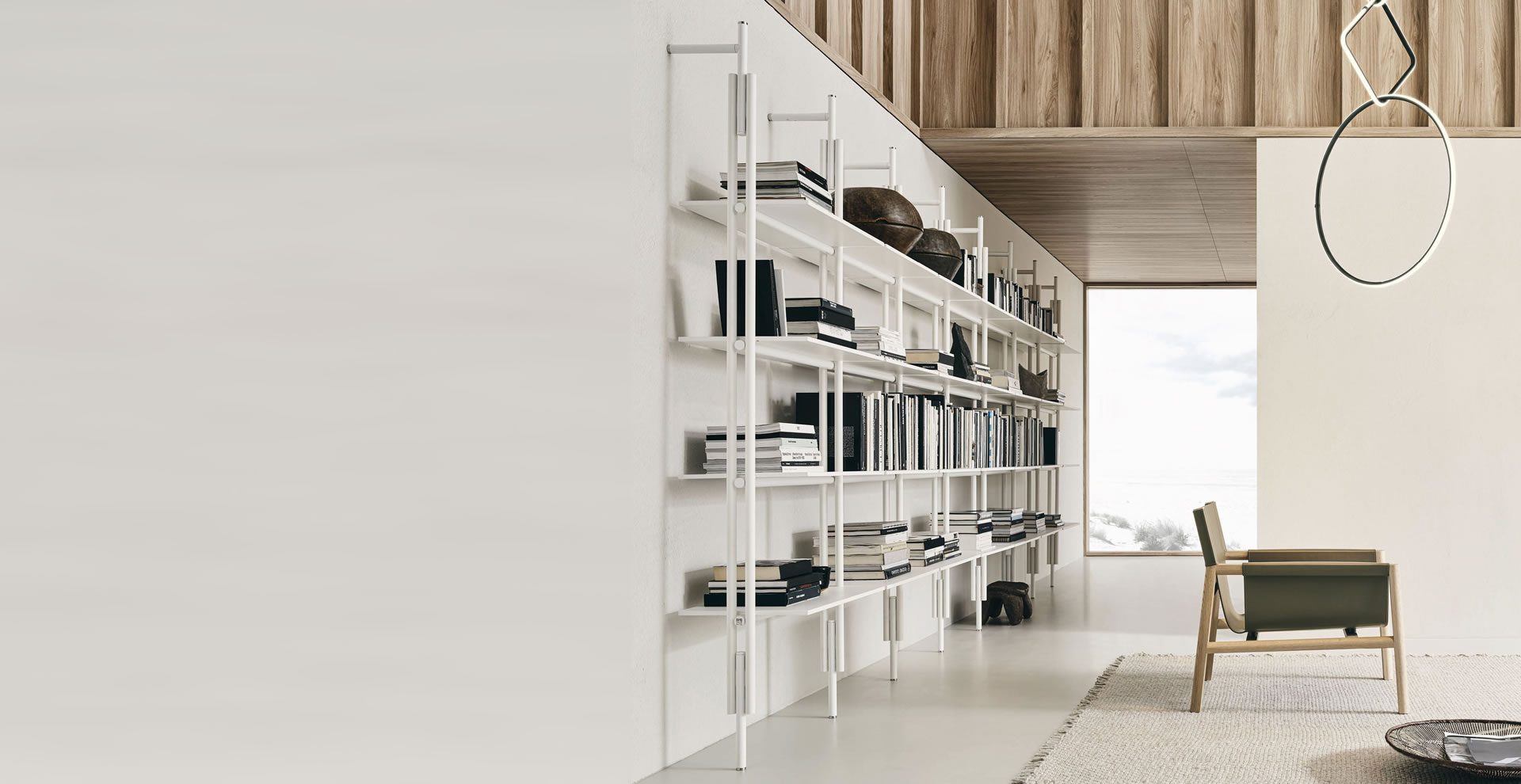 Klassiek maar eigentijds, essentieel en toch uiterst flexibel, het Jack wandsysteem wordt aangeboden in twee versies: met verticale staanders van vloer tot plafond, of met stangen voor bevestiging aan de muur. De modulariteit en discrete technische oplossingen die aan het project ten grondslag liggen, maken het mogelijk om composities te creëren voor elke ruimte en inrichtingscontext. Het systeem bevat tal van elementen die kunnen worden gecombineerd om de functionaliteit van het systeem te vergroten. Denk aan diverse planken, opbergelementen zoals lades en klepdeuren. De elementen van het Jack wandsysteem zijn verkrijgbaar in twee kleuren, waaraan Canaletto walnoot en vier eiken afwerkingen als optie zijn toegevoegd voor de planken en opbergers.