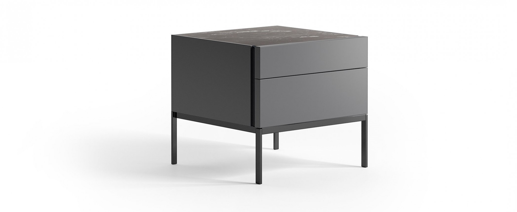 Een grote familie van opbergers in hout, gekenmerkt door geverfde zij-inzetstukken en matglazen bladen in kleurnuances waarmee klanten duidelijke contrasten kunnen creëren tussen frame en lades, en ook monochromatische kasten. Er zijn twee versies van het onderstel beschikbaar: het traditionele staande onderstel en het metalen onderstel dat de aandacht vestigt op de slanke lijnen.
