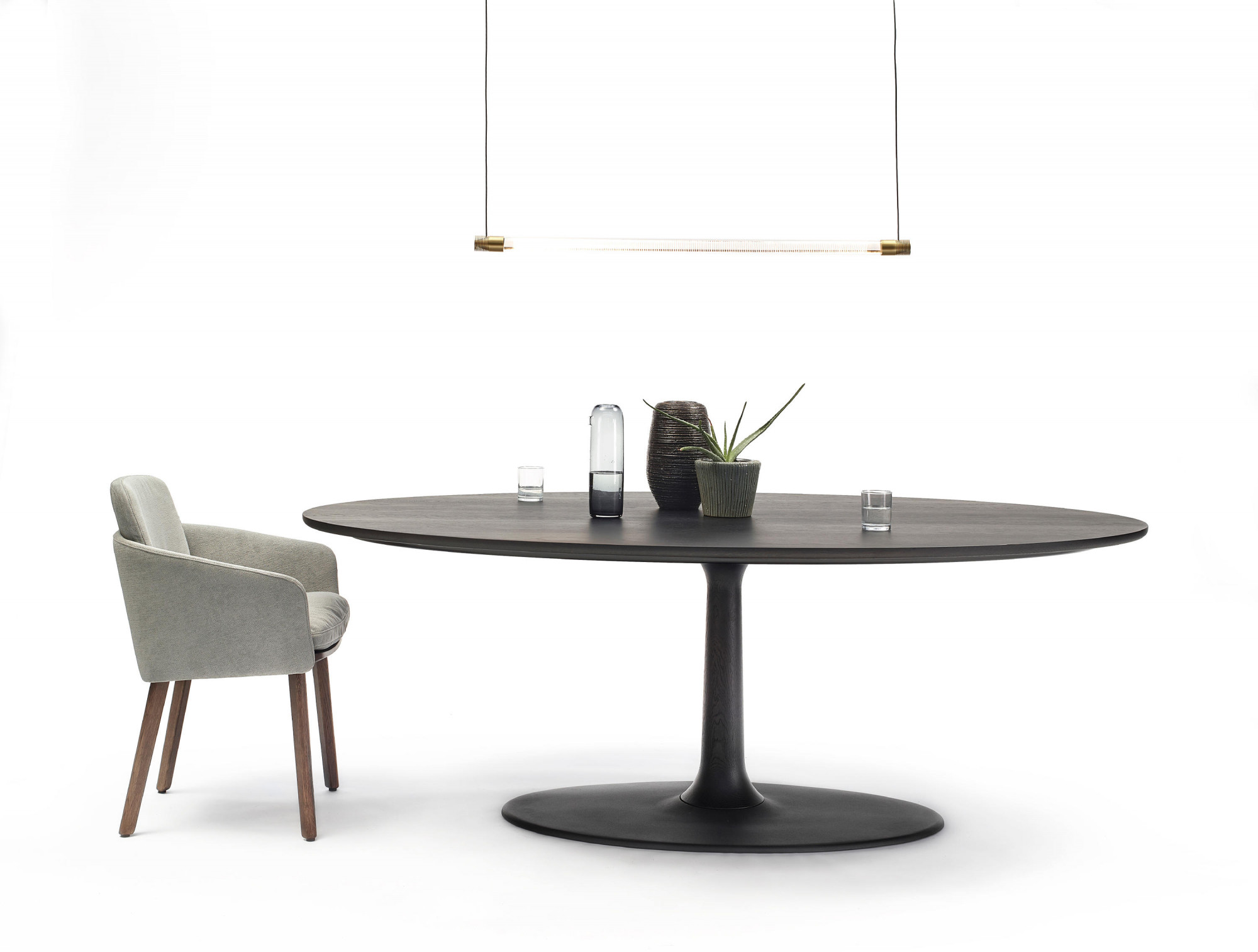 De Joist eetkamertafel is door zijn ronde vorm een echt archetype. De centrale steunkolom zorgt voor veel beenruimte en bewegingsvrijheid. De ronde of ovalen vorm maakt van Joist een tafel om te socializen: iedereen kan elkaar zien. De centrale steunkolom is gemaakt van gegoten aluminium of kan bekleed worden in hetzelfde hout als de top. Bij het creëren van de unieke kleine ribben van de steunkolom heeft de ambachtelijke gieterij absoluut de grenzen overschreden van wat mogelijk is bij zandgieten. Het aluminium dat in deze tafel wordt gebruikt, is geleverd door een Nederlandse partner. Joist is ontworpen op basis van het 'design to disassembly' principe: de tafel is geheel demontabel zodat de elementen gerecycled kunnen worden. In de loop van de tijd is het ook mogelijk om het massief houten blad en de steunkolom op te knappen.