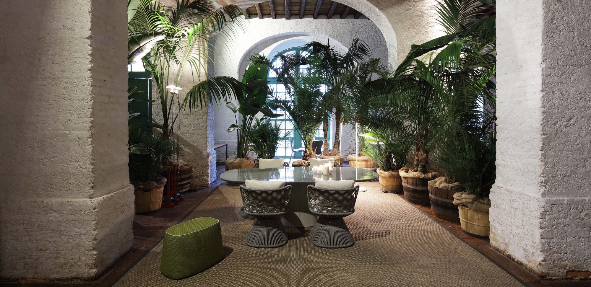 De Flair O' Outdoor stoelen zijn hierbij ontworpen, al passen bij dit monoliete model vele modellen en verschillende materialen.
