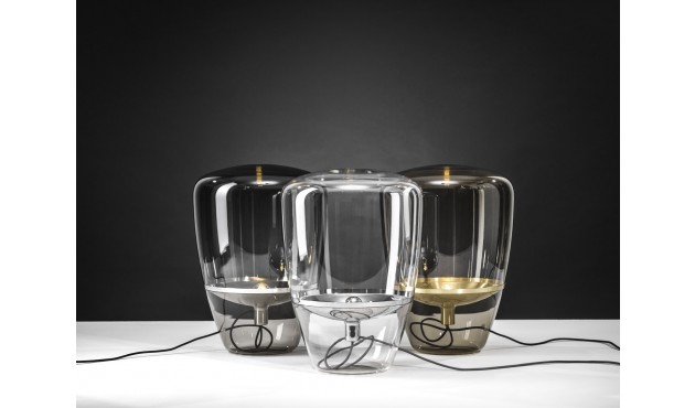 Brokis Balloon Medium tafellamp, smoke grey met zwart metaal.